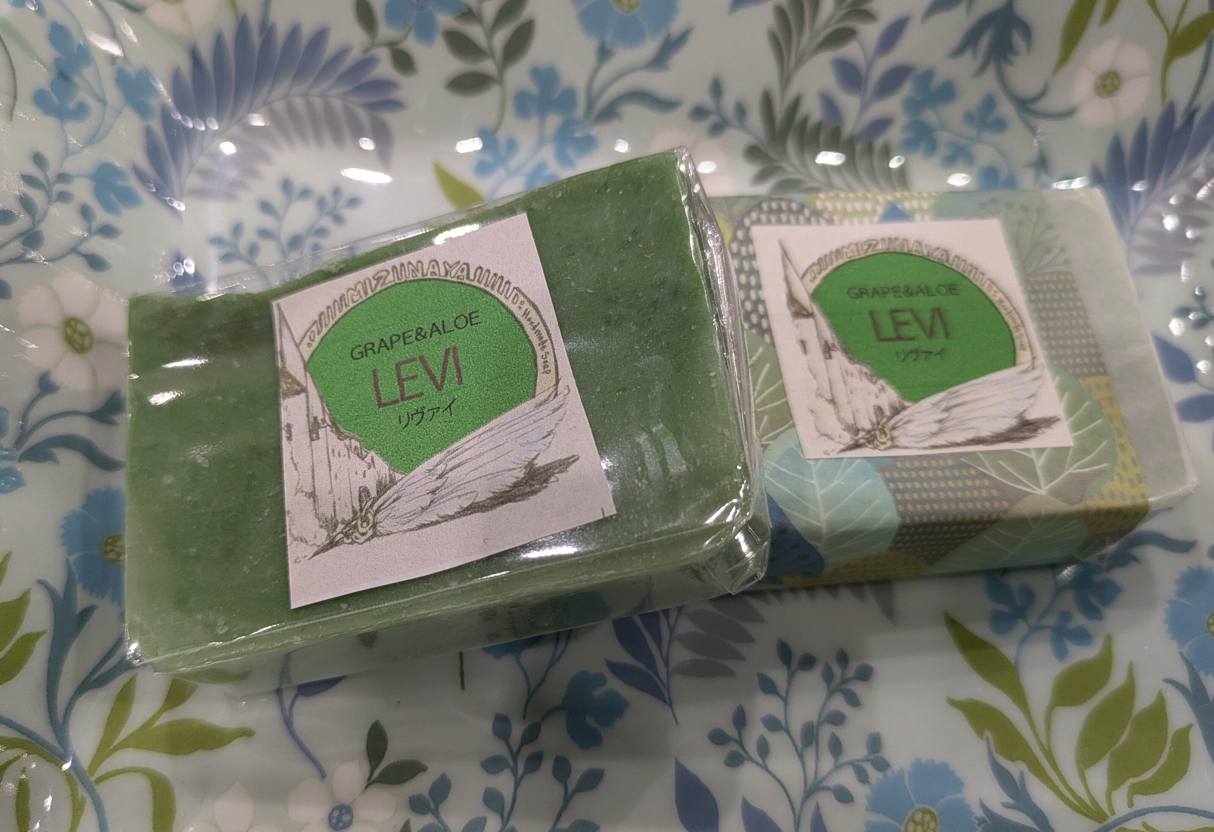 グレープシードやアボカドといった、グリーン色のオイルにこだわりアロエバターを足した、見た目以上に繊細で優しいところがある、ギャップ萌えの一品です。主張しすぎない石けんらしいライトな香りです。