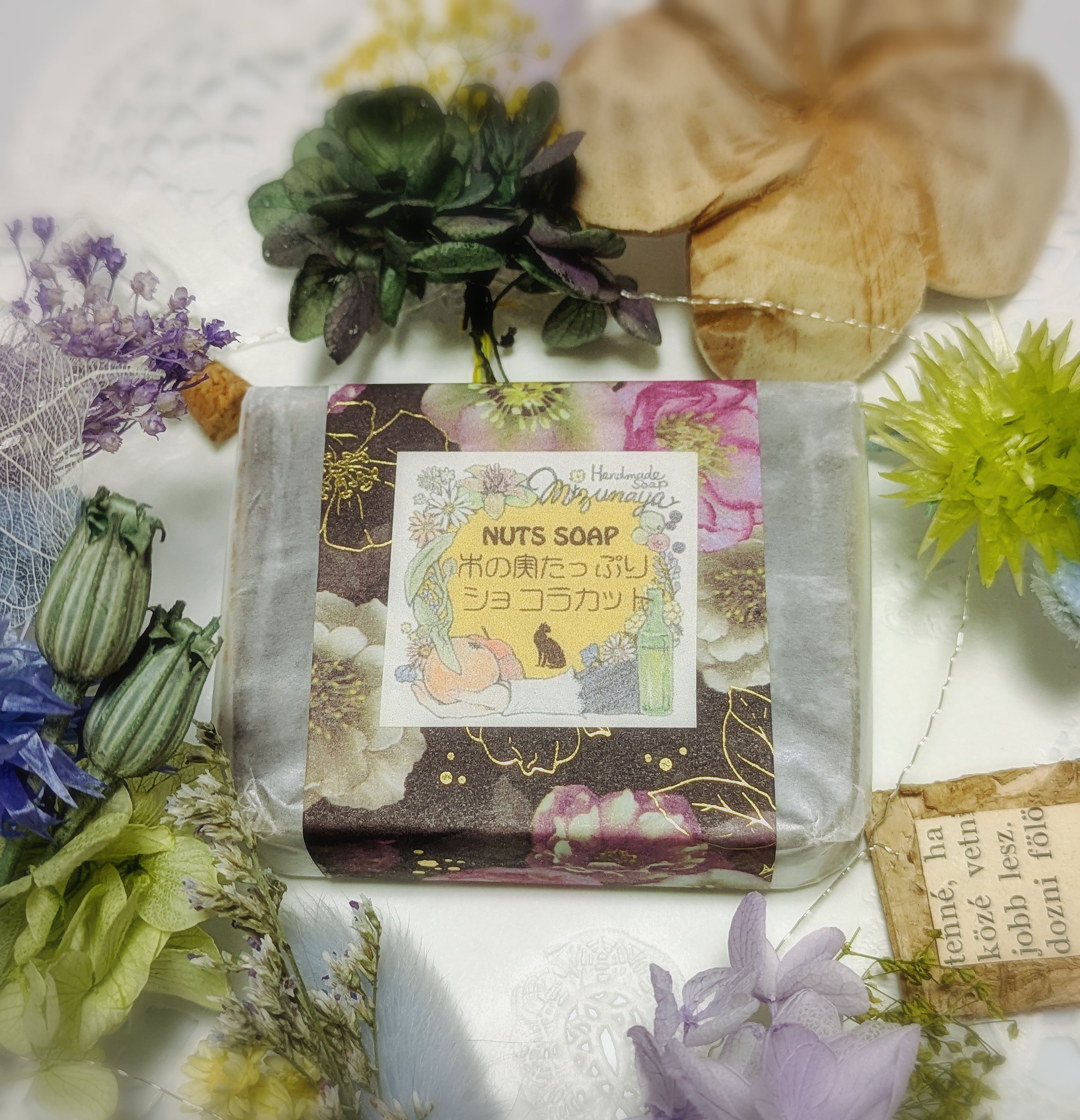 木の実オイルをメインに組み合わせ、カカオバターやココアパウダーを加えて極上リッチなバター石けんにしました。