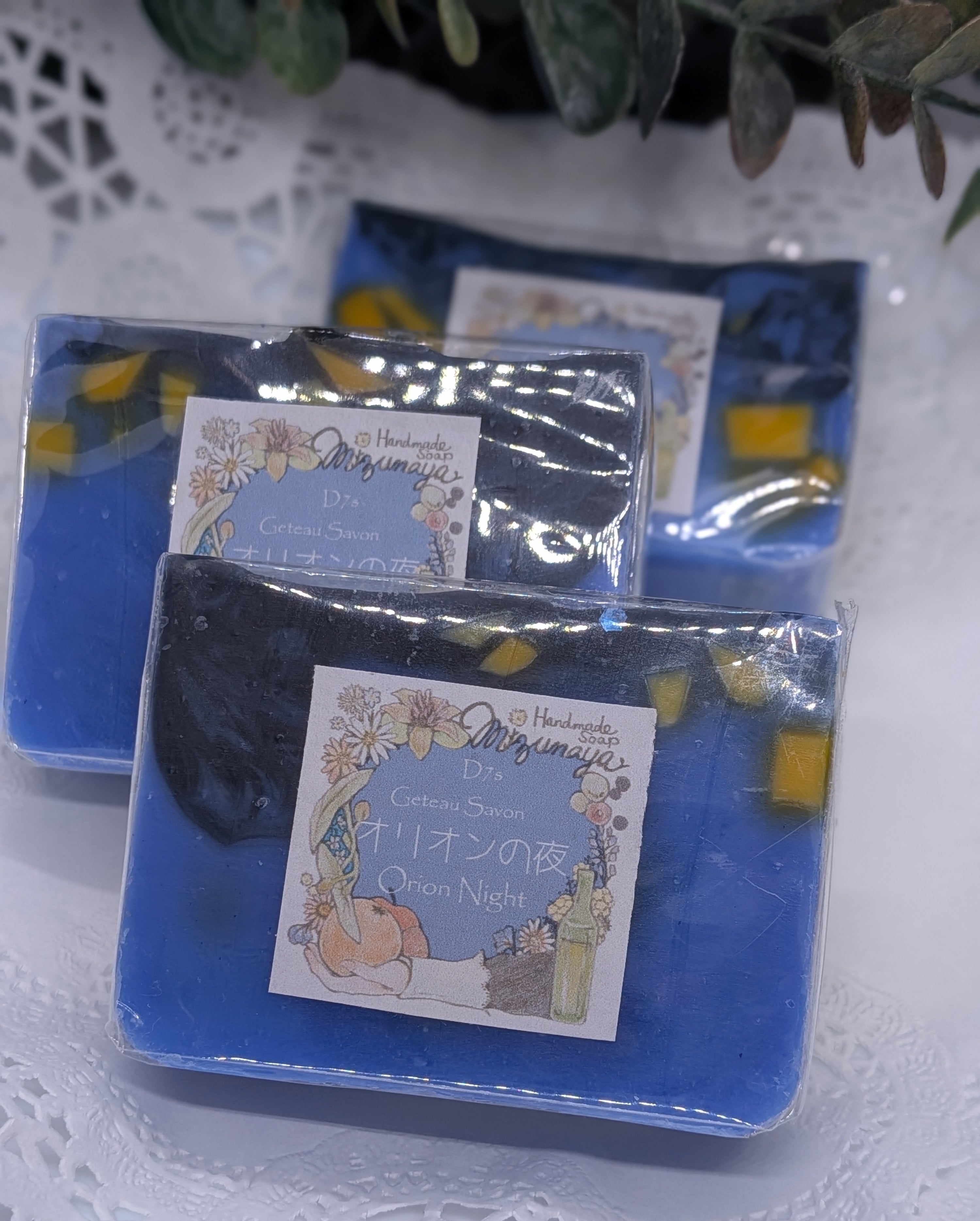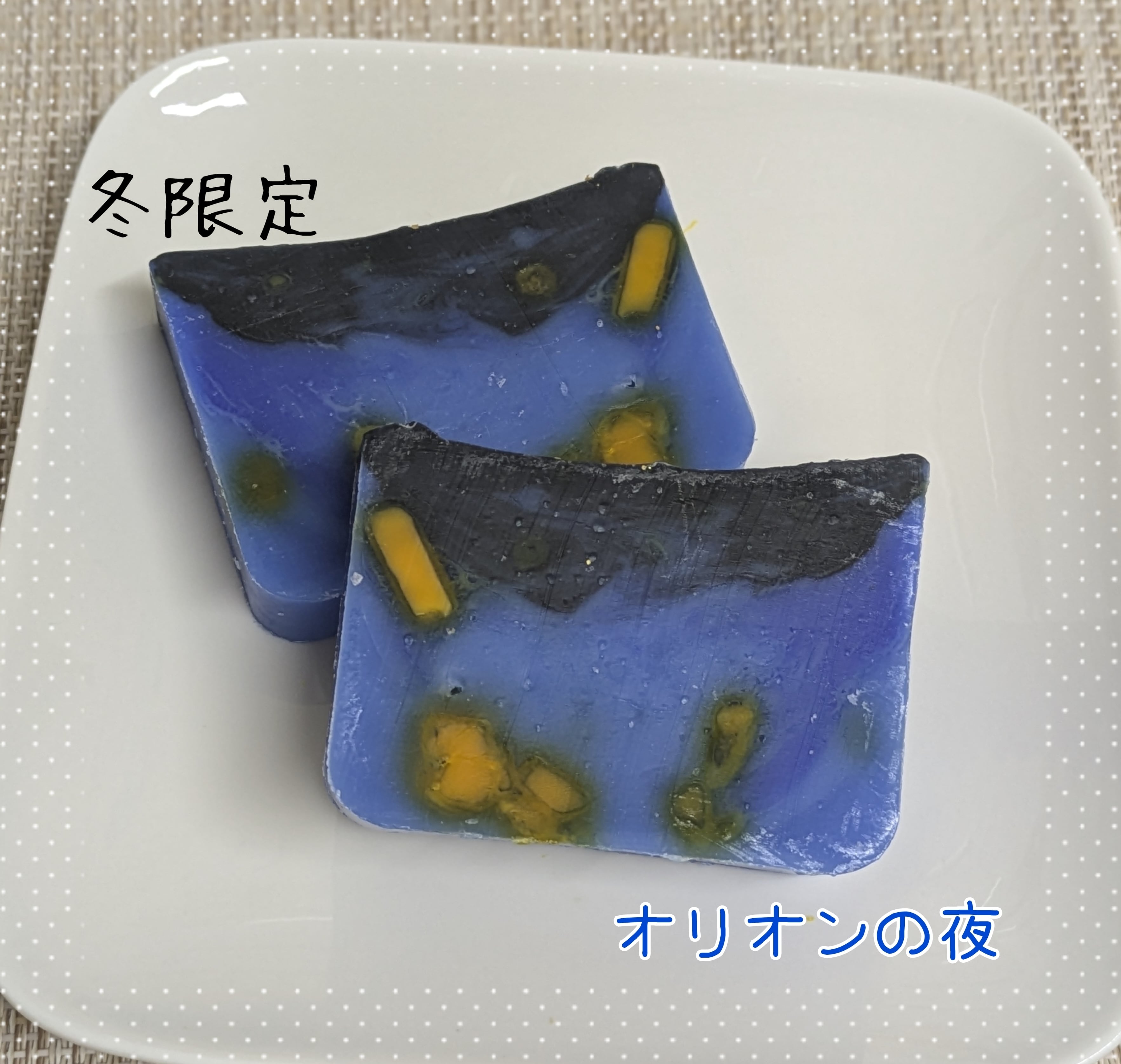 ぼうっと輝く空の星は太陽のマルセイユソープ。天然色のブリージング(にじみ)が自然と出てきています。